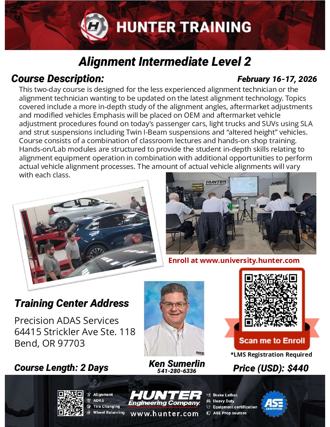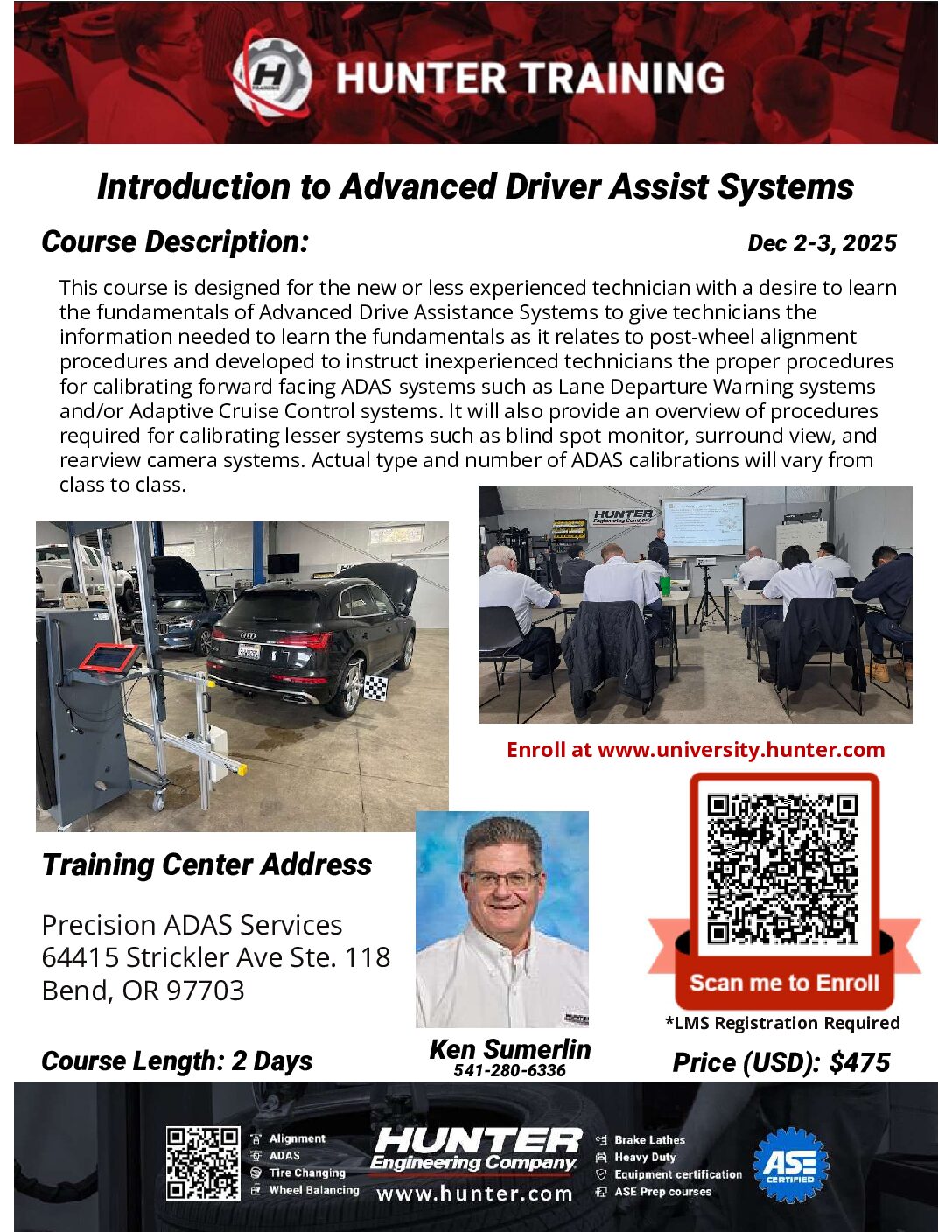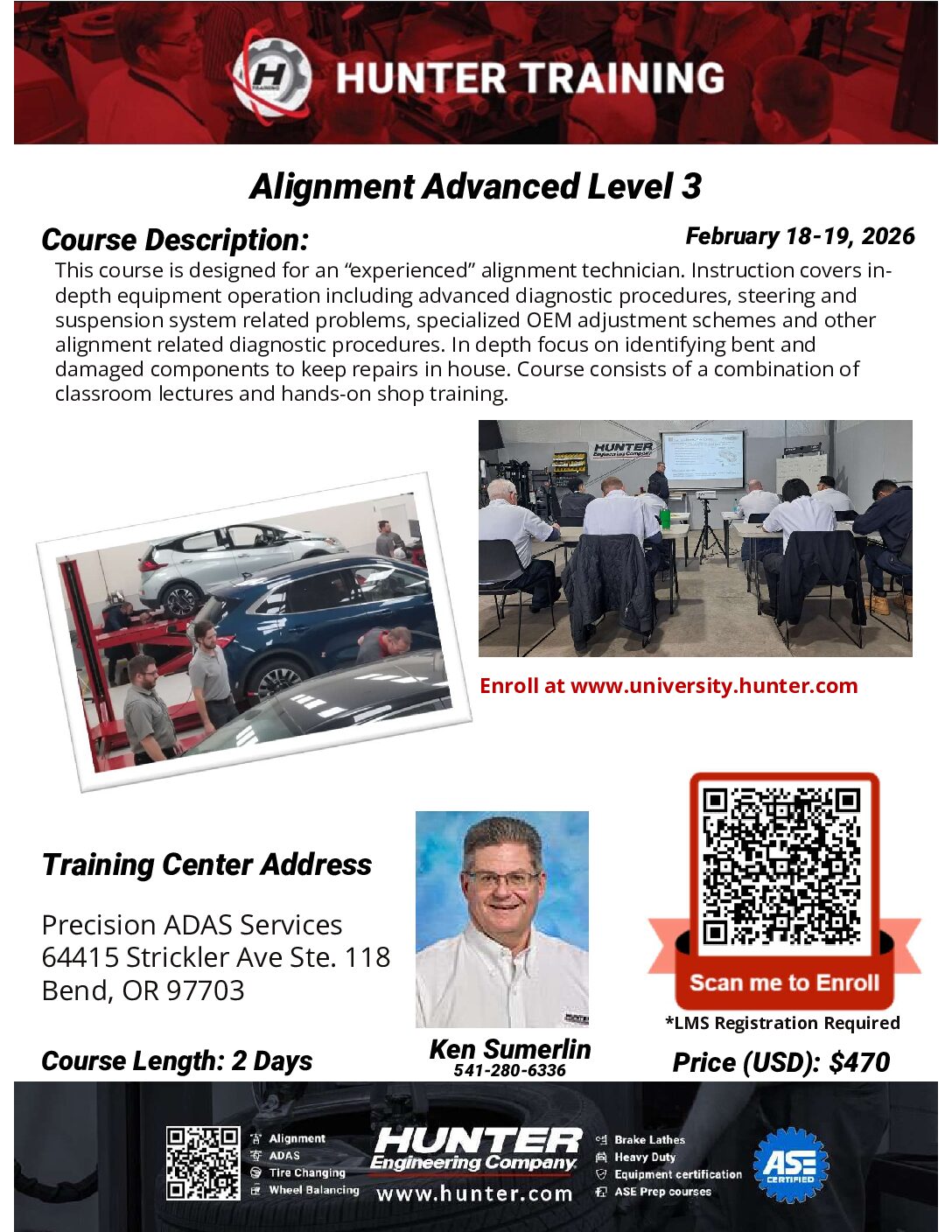 Northwest Auto Care Alliance is partnering with Hunter Engineering to bring you trainings. NWACA members receive a 10% discount. Please call or email Ken Sumerlin for more information.