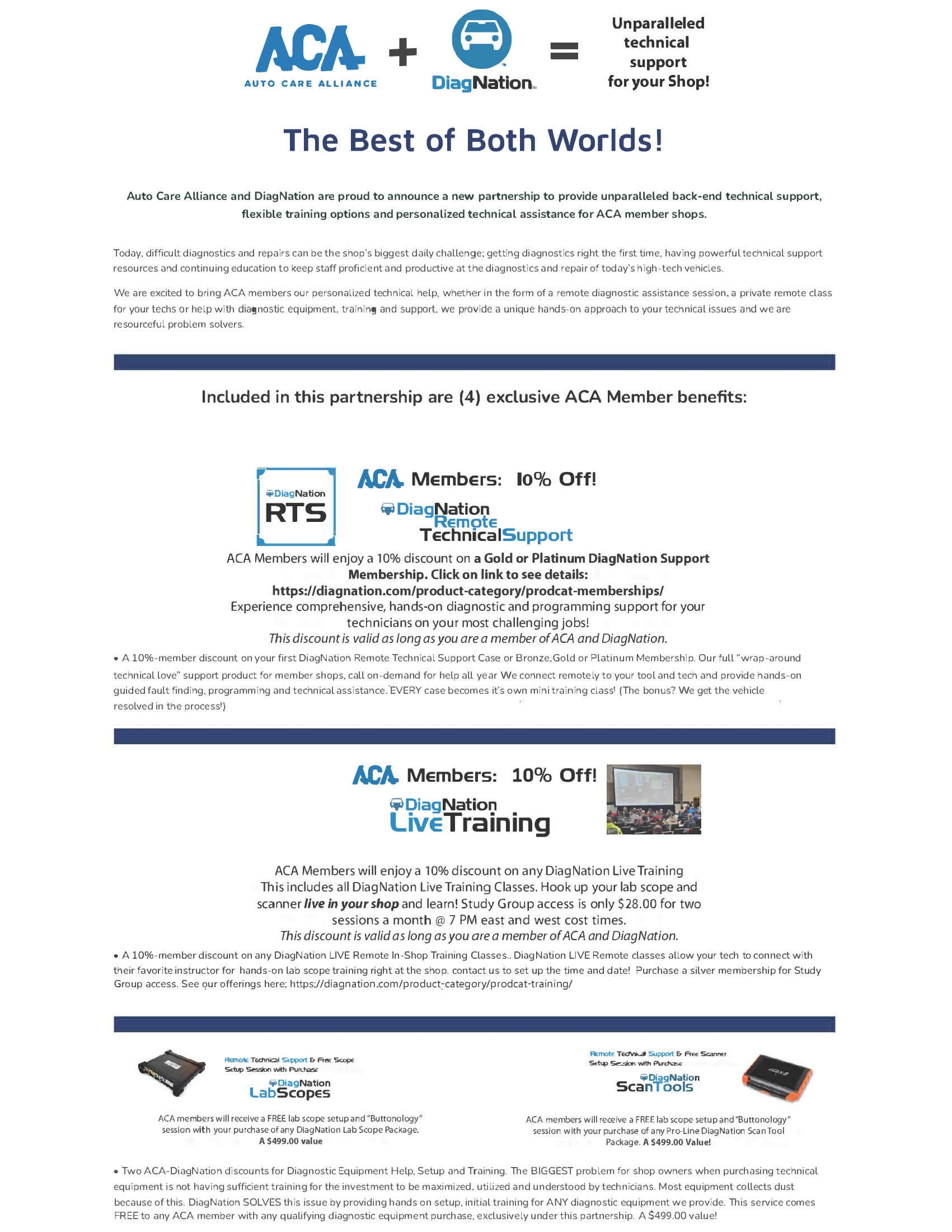 Being a member of NWACA means you are also a member of ACA (Auto Care Alliance) which entitles you to additional benefits from ACA.